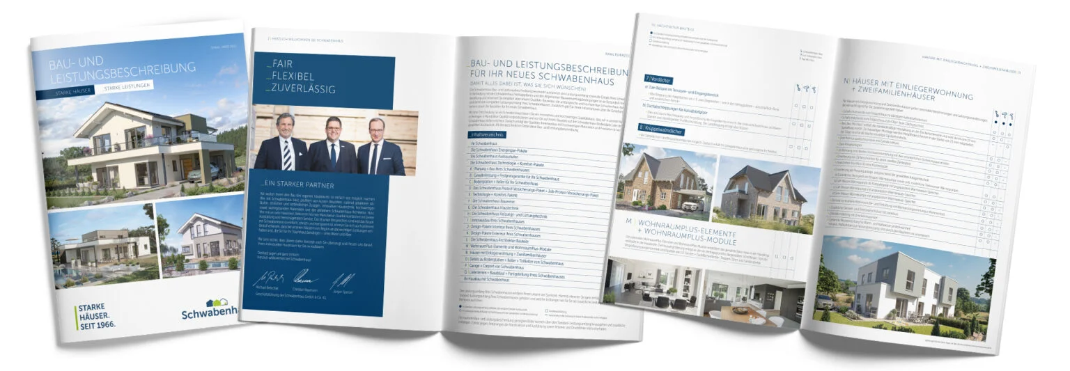 Die Schwabenhaus Bau- und Leistungsbeschreibung beschreibt Ihnen ausführlich und transparent den Leistungsumfang sowie alle Details Ihres Schwabenhauses.
