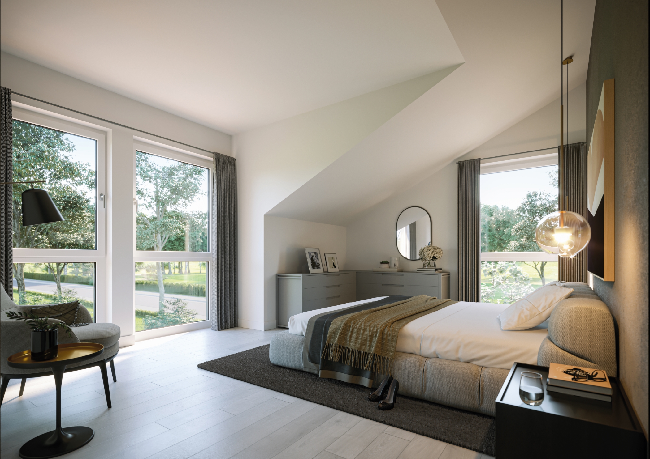 Dachüberstand Design XS, Paket Fensterupgrade E7, Rechteck-Erker E7 Eingang, Querhaus E7 Flachdach Wohnen+Kind1, Übereck-Terrassenüberdachung E7, Design-Fensterecke Kind 1