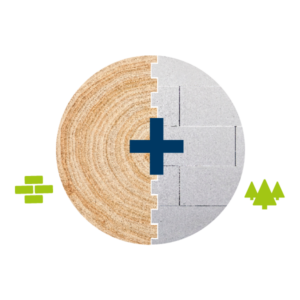 • 160 mm Wärme- und Schalldämmung aus umweltfreundlichem und nachhaltigem Mineraldämmstoff im Gefachbereich des Holzrahmenfachwerks