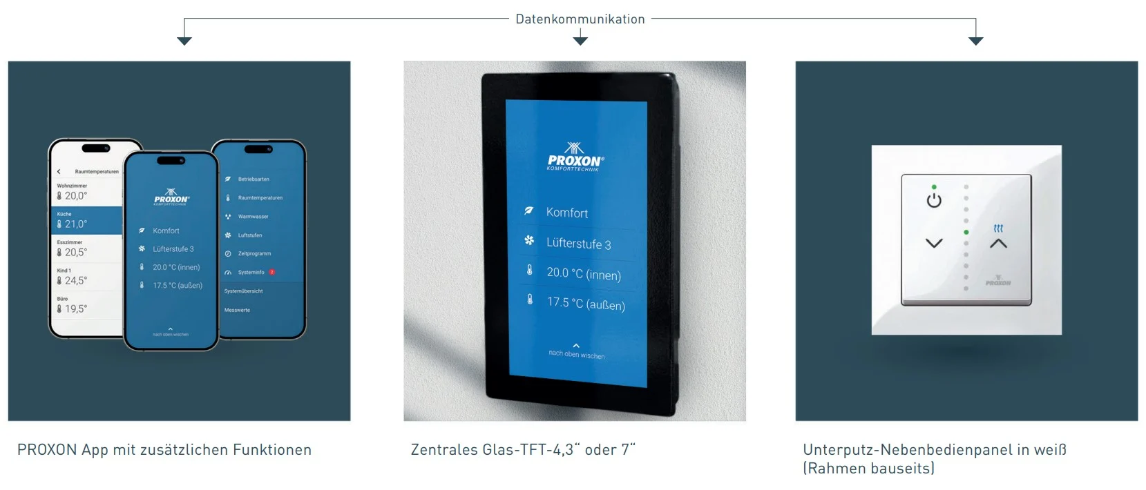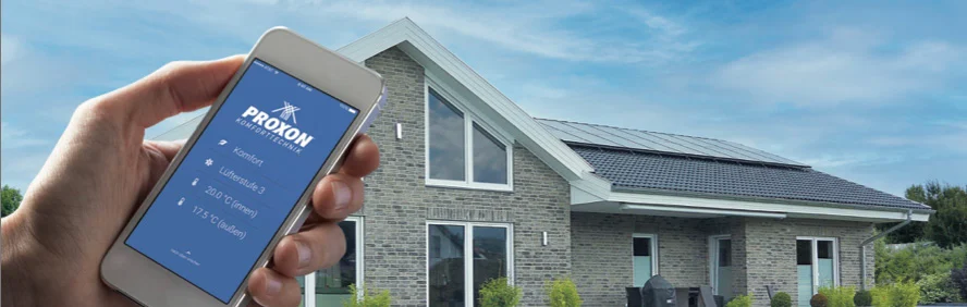 Mit der optionalen PROXON HomeControl App haben Sie die Möglichkeit, Ihr Schwabenhaus von unterwegs bequem und individuell über Ihr Smartphone oder Tablet zu steuern – sei es für das Heizen, Lüften, Kühlen oder die Warmwasseraufbereitung.