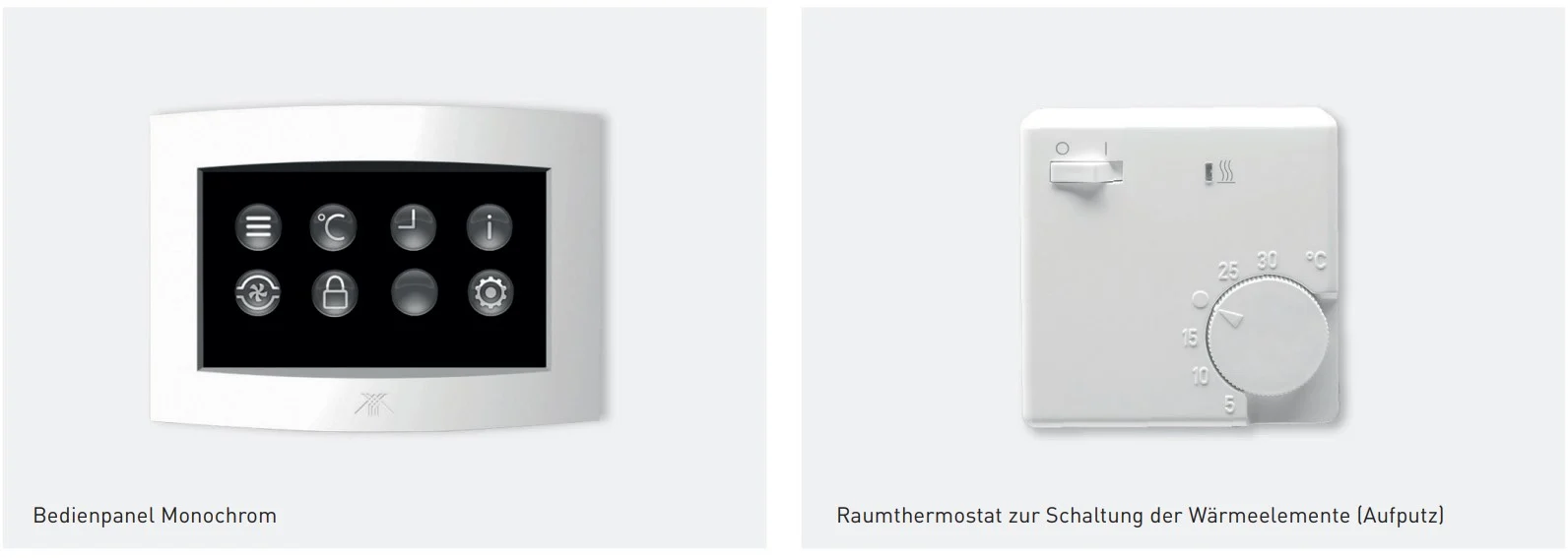 Die Temperaturmessung findet dann hinter einer Abdeckung in 2 m Höhe im jeweiligen Raum statt.