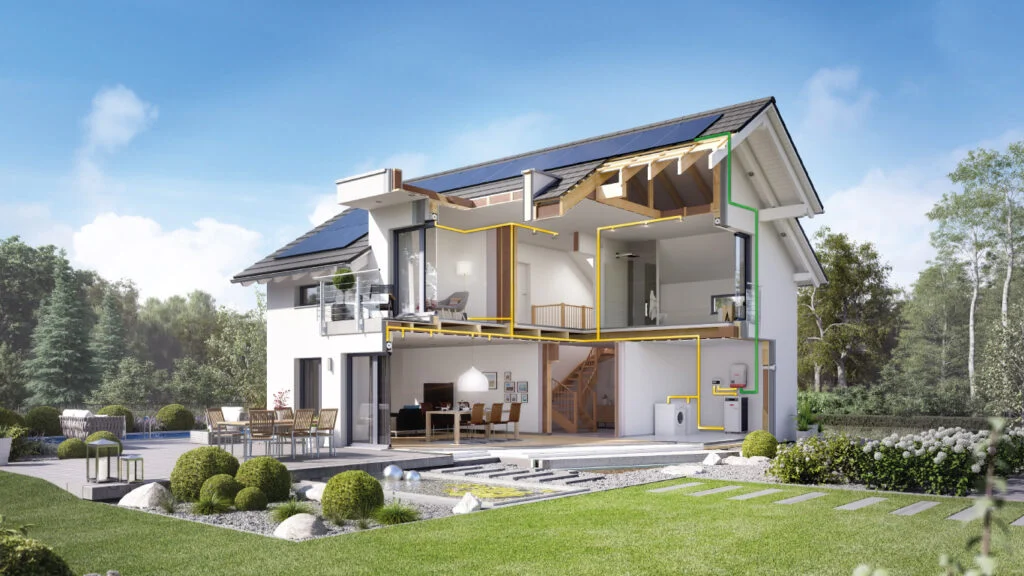 Durch eine Photovoltaik-Anlage auf Ihrem Eigenheim können Sie einen Teil der natürlichen Sonnenstrahlung nutzen und diese mit Hilfe von Solarzellen in elektrische Energie umwandeln. Erzeugen Sie somit den Strom für Ihr Traumhaus mit der Kraft der Sonne und genießen Sie den Schwabenhaus Standard, welcher für jedes Schwabenhaus die Vorbereitung für die Ausführung einer Photovoltaik-Anlage bereits beinhaltet.